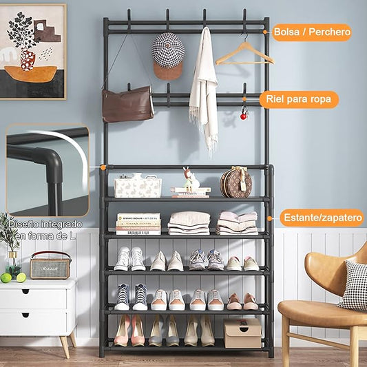Perchero y Zapatero 2 en 1 Metal Multifuncional 5 Niveles Premium